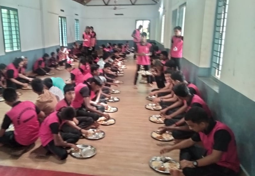 The children of the school are provided nutritious mid day meal with the help of the management and through Aksara Daasoha. Provision of Free Uniform, Reading and Writing materials.