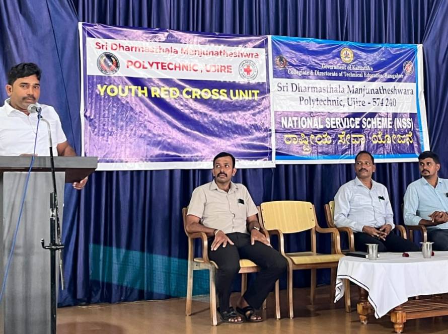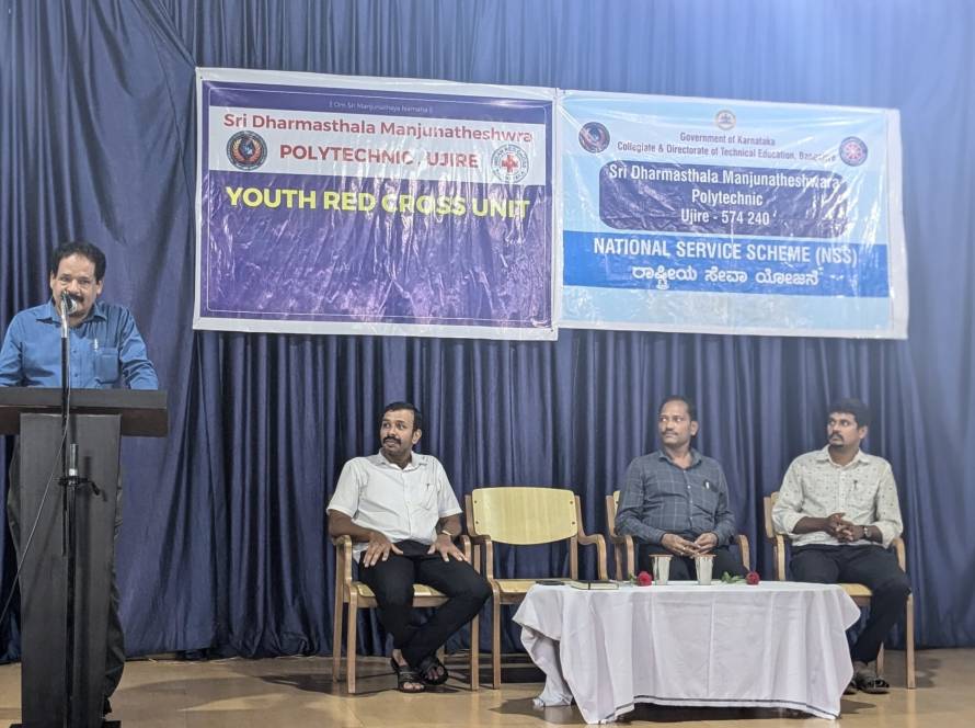 The inauguration ceremony of the annual activities of the National Service Scheme (NSS) and Youth Red Cross (YRC) units of Sri Dharmasthala Manjunatheshwara Polytechnic, Ujire, was held on July 15, 2025, in the college auditorium.