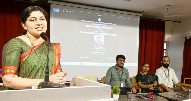 Ujire, July 28 — “Emotional strength plays a crucial role in achieving success in life,” said Ashwini H., Assistant Professor in the Department of Psychology at SDM PG Centre, Ujire. She was delivering a guest lecture on the topic “Emotional Intelligence for Academic Success”, organized by the Department of Business Administration at SDM College.Highlighting the...Read More