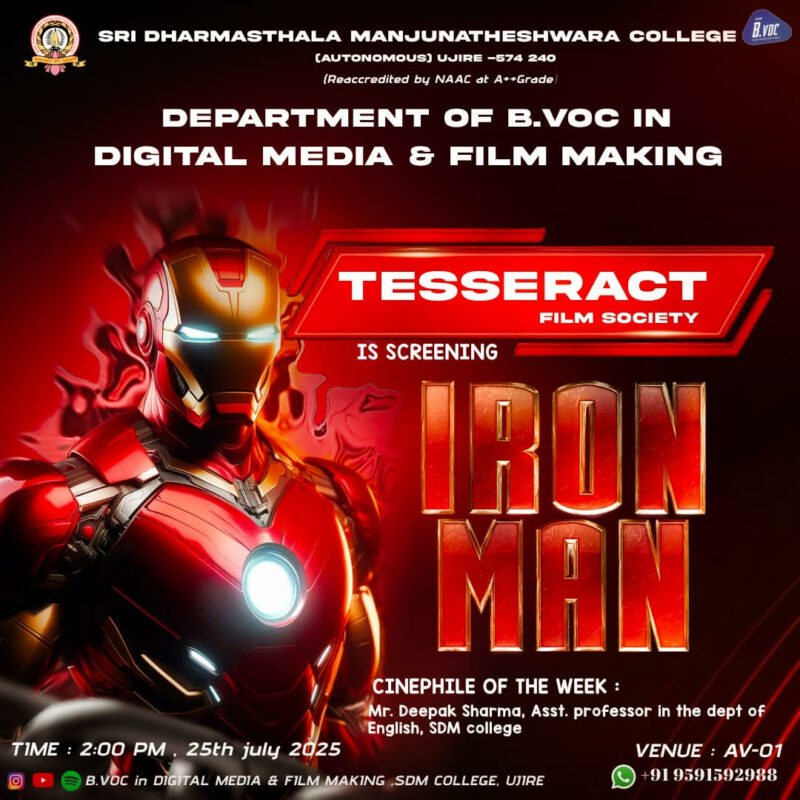 ‘Iron Man’ from the Marvel franchise was screened on 25 July 2025 at an event organized by Tesseract. Mr.Deepak Sharma, Assistant Professor at the department of English was identified as ‘Cinephile of the Week’, a novel concept initiated at Tesseract to include film enthusiasts in screening events so that they can lead the discussions related...Read More