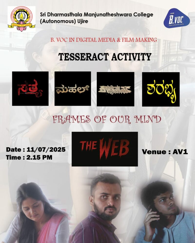 Six short films produced by the students of the department of B.Voc (DMFM) were screening at an event organized by Tesseract on 11 July 2025. The films were titled “Sathya”, “Mahal”, “Sharabhya”, “Haleya Putagalu” and “The Web” and screened for all students of the department. The short films were later discussed among all present. Various...Read More