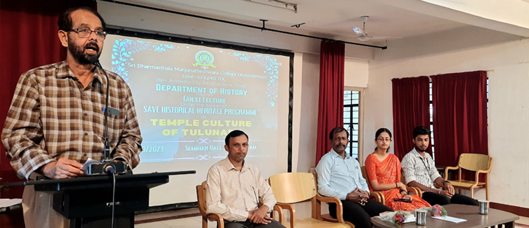 One of the hallmarks of the department since its inception is its contribution in deciphering the inscriptions available locally. With experienced and well qualified faculties, the students are provided with field-studies of historical sites community visit and are introduced to the subjects like epigraphy, iconography, museology, Indology, archaeology and excavation. The department under SDM Prakrith Study Centre guides the students to learn the ancient language Prakrith Ratna, Pravesh, Diploma, Prathama, Madhyama, Visharada courses. Tulu Value added Course to all stream of students.