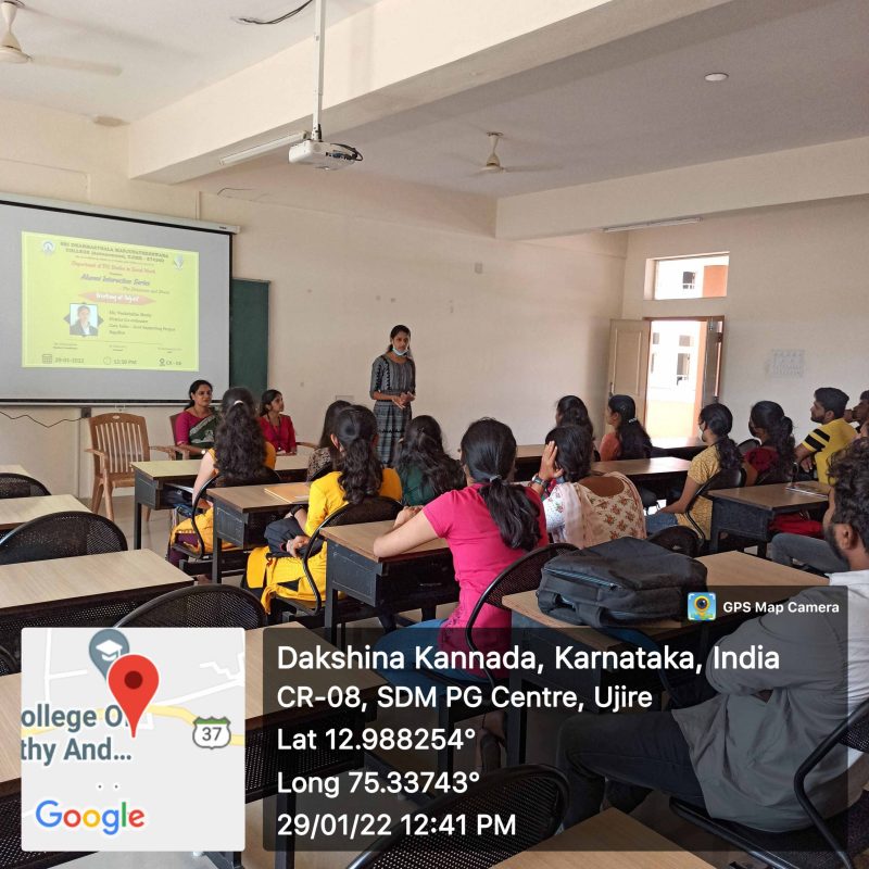 Department of PG Studies in Social Work organised an “Alumni Interaction – the forum for ‘The Dreamers and Doers on 07-02-2022 at CR-08, SDM PG Centre, Ujire at 12.30PM. The interaction was done by Ms S Aishwarya, Welfare Officer, Gokuldas Exports Pvt.Ltd., Bangalore & Mr Chinamy Hedge- Trainee HR & Admin, Suprajith Engineering Ltd.,Bangalore, the...Read More