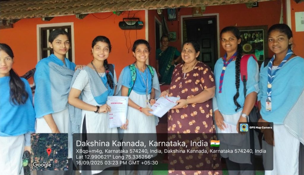 Following the session, the students of III B.Sc and Rovers and Rangers conducted a Community Awareness Drive. As part of this activity, students visited nearby houses and distributed pamphlets to raise awareness on important environmental issues such as ozone protection, water conservation, and reducing plastic usage. The drive aimed to connect science with society and encourage sustainable practices at the community level.