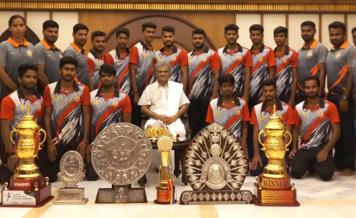 The Department of Physical Education has a built-up area of 10,979 sq.ft. encompassing an office room, a staff room, a stock room and a dressing room.