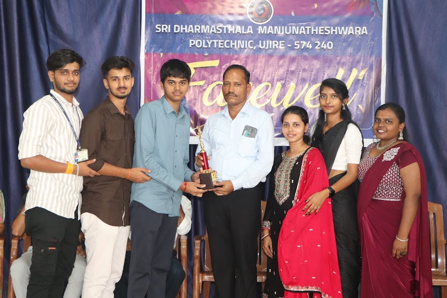 A heartfelt farewell function for the final year students of SDM Polytechnic was held on 4th April 2025 at the Workshop Hall. The event was graced by the presence of the Principal and Heads of various departments, adding significance to the occasion. The ceremony began with a warm welcome by Ms. Renita, Lecturer in the Computer Science Department, followed by a well-orchestrated program led by Mr. Ashwin, Lecturer in the Civil Engineering Department, who served as the Master of Ceremony. During the event, winners of various sports and cultural competitions were recognized for their achievements and were awarded prizes. The Principal addressed the students, highlighting the numerous career opportunities that lie ahead and encouraging them to pursue their goals with dedication and confidence. The function concluded with a vote of thanks delivered by Mr. Padmaraj Annaji, leaving everyone with fond memories and good wishes for the outgoing students’ future endeavors.