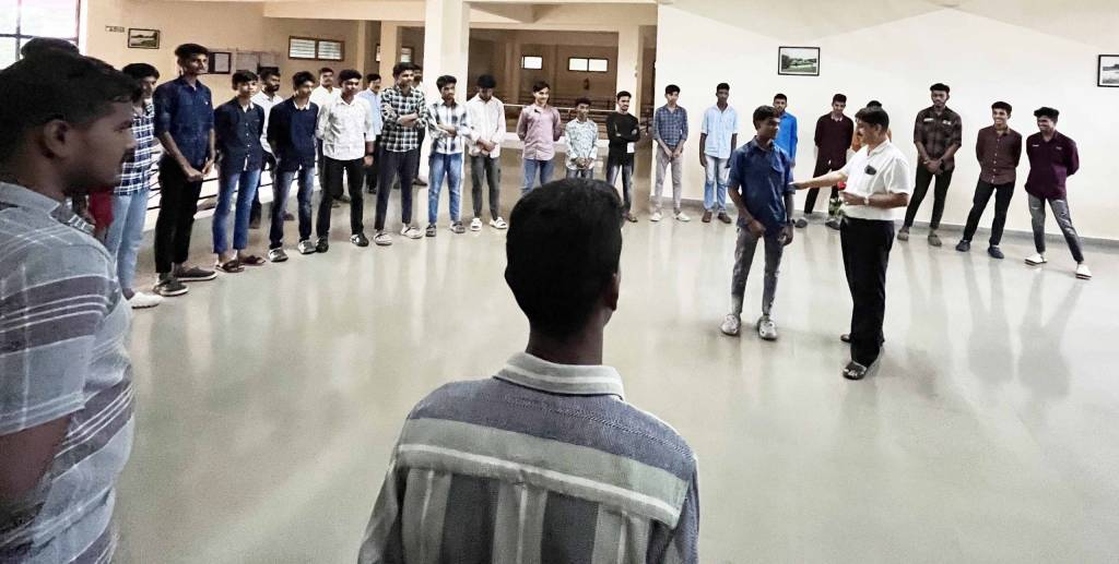 A dynamic series of icebreaker activities was organized for first-year students on 5th july 2024 , conducted by Abraham James(senior faculty), Lohith Kumar Jain and Karunakar faculty from RUDSET institute, ujire. These thoughtfully designed activities aimed to ease the students into their new academic environment by fostering connections and creating a welcoming atmosphere. through interactive games and group exercises.