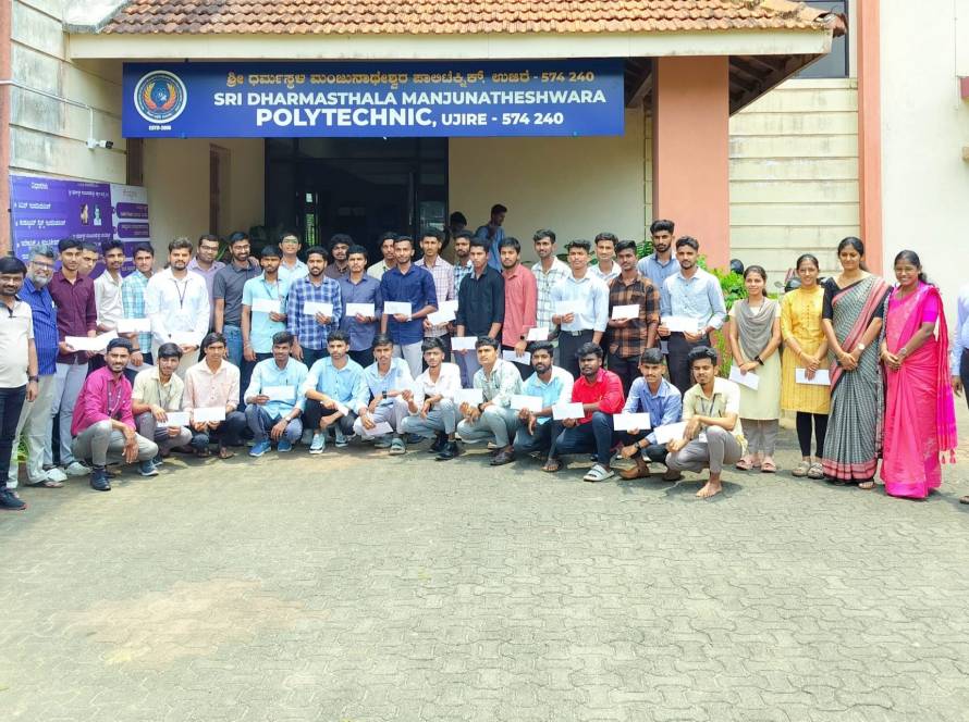 The Departments of Electronics & Communication Engineering and Mechanical Engineering at SDM Polytechnic, Ujire, organized an Industrial Visit for their final-year students on August 7 to Sri Dharmasthala Siri Gramodyoga Samsthe, Belthangady.