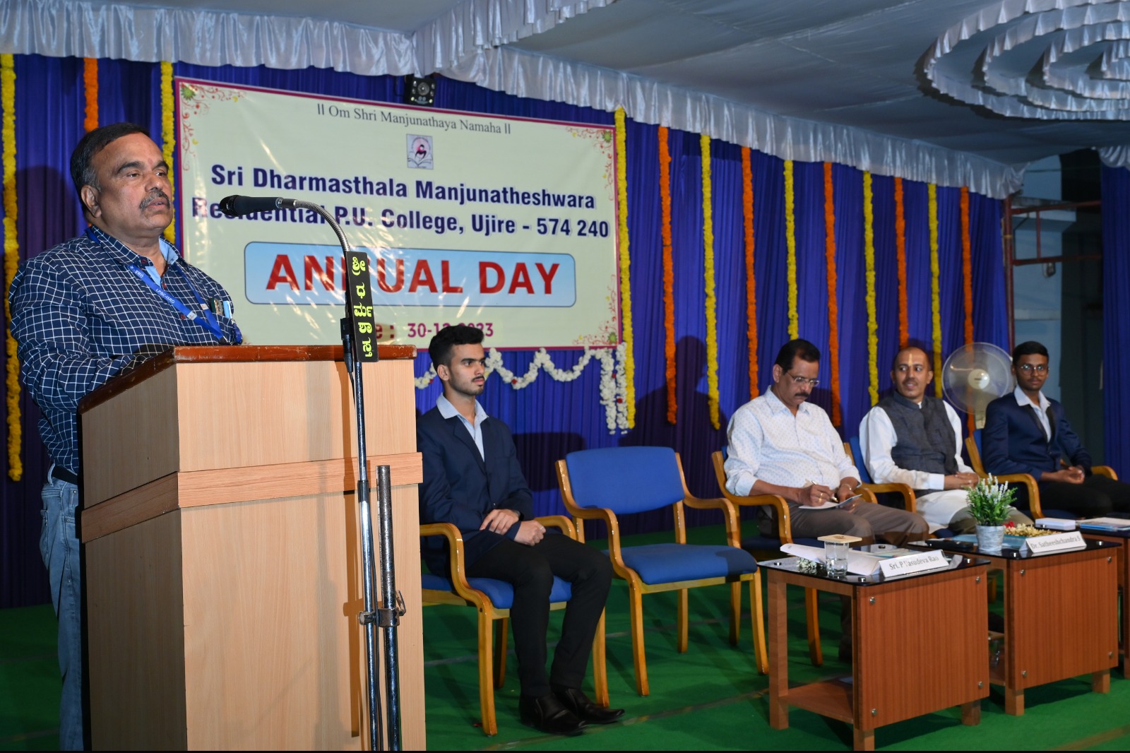 ವೇದಿಕೆಯಲ್ಲಿ ಉಪಸ್ಥಿತರಿದ್ದ ಕಾಲೇಜಿನ ಪ್ರಾಂಶುಪಾಲರಾದ ಶ್ರೀ ಸುನಿಲ್ ಪಂಡಿತ್ ರವರು ಕಾಲೇಜಿನ ವಾರ್ಷಿಕ ವರದಿಯನ್ನು ವಾಚಿಸಿದರು. ಕಾಲೇಜಿನ ವಿದ್ಯಾರ್ಥಿ ನಾಯಕ ಹರ್ಷಿತ್ ಎ. ವಿ. ಹಾಗೂ ಕಾರ್ಯದರ್ಶಿ ವರುಣ್ ಕುಮಾರ್ ಹೆಚ್.ಎಲ್ ವೇದಿಕೆಯಲ್ಲಿ ಉಪಸ್ಥಿತರಿದ್ದರು.