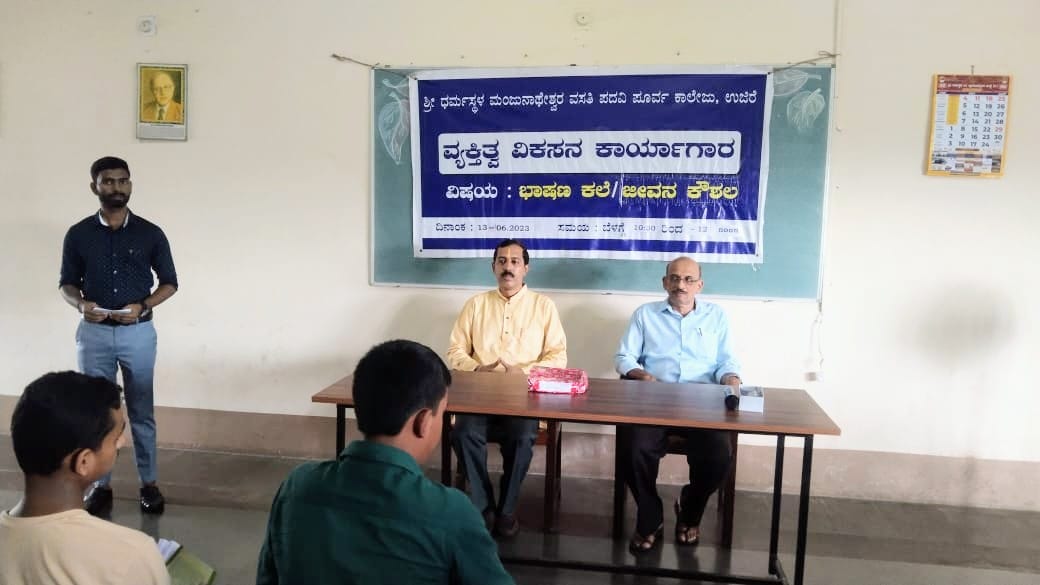 ಶ್ರೀ ಧರ್ಮಸ್ಥಳ ಮಂಜುನಾಥೇಶ್ವರ ವಸತಿ ಪದವಿಪೂರ್ವ ಕಾಲೇಜಿನಲ್ಲಿ ನಡೆದ ‘ವ್ಯಕ್ತಿತ್ವ ವಿಕಸನ ಕಾರ್ಯಾಗಾರ’ದಲ್ಲಿ ನಿವೃತ್ತ ಉಪನ್ಯಾಸಕರಾದ ಶೀಯುತ ಗೋಪಾಲ ಪಟುವರ್ಧನರು ವಿದ್ಯಾರ್ಥಿಗಳಿಗೆ ವಿವಿಧ ಮನರಂಜನೆ ಚಟುವಟಿಕೆಗಳ ಮೂಲಕ,ಮಾಹಿತಿ ನೀಡಿದರು. ಕಾಲೇಜಿನ ಪ್ರಾಚಾರ್ಯರಾದ ಸುನೀಲ್ ಪಂಡಿತರು ಉಪಸ್ಥಿತರಿದ್ದರು. ರಾಸಾಯನ ಶಾಸ್ತ್ರದ ಉಪನ್ಯಾಸಕಿ ಚೈತ್ರ ಪ್ರಭು ಕಾಲೇಜಿನ ಪರವಾಗಿ ಗೌರವ ಕಾಣಿಕೆ ನೀಡಿದರು.ಕಾಲೇಜಿನ ಗಣಿತಶಾಸ್ತ್ರ ಉಪನ್ಯಾಸಕರಾದ ಕೃಷ್ಣಪ್ರಸಾದ್ ನಿರೂಪಿಸಿ, ವಂದಿಸಿದರು.