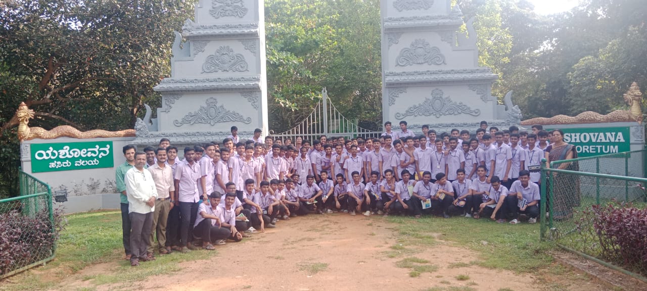 As part of the college’s Eco Club initiative, second-year biology students were taken on an educational visit to Yashovana in Ujire. During the visit, the students explored the rich flora, including rare herbs, indigenous plants used in traditional medicine, and various medicinal plants unique to the Western Ghats. The program was coordinated by Ms. Vani M.A., the head of the biology department and Eco Club coordinator. Accompanying the students were Sanskrit lecturer Mr. Mahesh S.S. and biology lecturer Mr. Pradeep K.