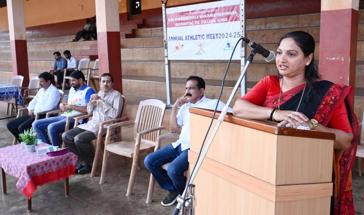 Alongside academics, when students enhance their physical abilities, it improves their health. A healthy life is the true wealth. Sports contribute to both physical and mental well-being. Highlighting that sports instill discipline and strengthen our focus, Mr. Ramesh H., the Secretary of the SDM Ujire Sports Club, inaugurated the Annual Sports Meet and extended his best wishes. The chief guest of the event, Mrs. Usha Kiran Karanth, President of Ujire Gram Panchayat, wished the students success. Presiding over the program, the college principal, Mr. Sunil Pandit, spoke about the importance of sports and the benefits it brings to academics. He expressed his hope for a healthy and competitive spirit among the participants.
