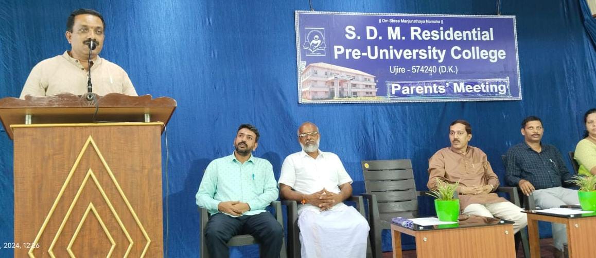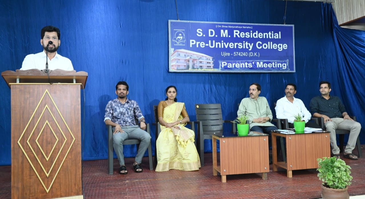 College Principal Mr. Sunil Pandit, who presided over the meeting, highlighted the importance of parents’ roles in students’ education and future. Social reformer Ramachandra was honored, and high-achieving pre-university students were felicitated. Physics lecturer Mr. Ramesh Babu provided information on CET/NEET/JEE classes. Assistant Principal Mr. Manish Kumar and SDM institution’s student Welfare Officer Mr. Yuvaraj Poovani were also present on the dais. Biology lecturer Mrs. Vani M.A gave the introductory remarks. Students led the prayer, and Sanskrit lecturer Mr. Mahesh S.S. anchored the event.