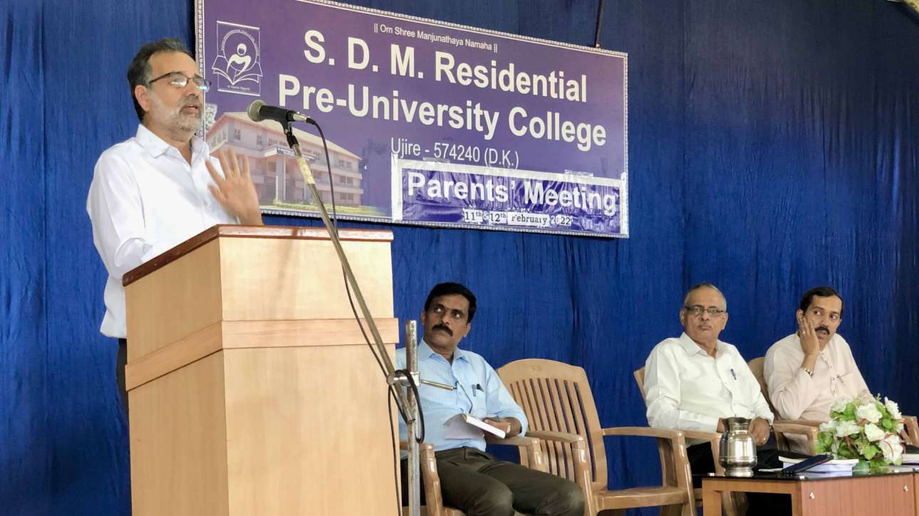 Parents’ meeting held on 11 Feb 2022 at prayer hall for both first and II PU students. Shree Girimane Shyamarao was the chief guest speaker writer, Shakaleshpur. He spoke on how to take care of your children and balancing is policy of the world. Parents have to balance children and society together. Dr.T.Krishnamurthy Principal chaired the meeting. Mr. Naganna Hosted the meeting.