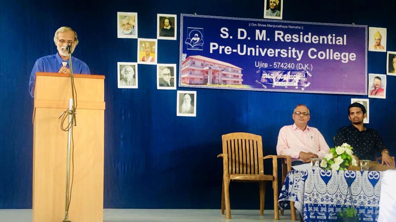 A veteran orator Dr. Madhav Bhat, Professor SDM PG college Ujire inaugurated Literary club in SDM Residential College Ujire on 31 July 2019. He said that language should be used creatively and intensively. Language is a passage to carry science forward. Mr. Abhin anchored the program and Mr. Sunil Pandit welcomed the guests. Dr.T. Krishnamurthy Principal, Parshwanath Hegde Coordinator of literary club were present on the stage.
