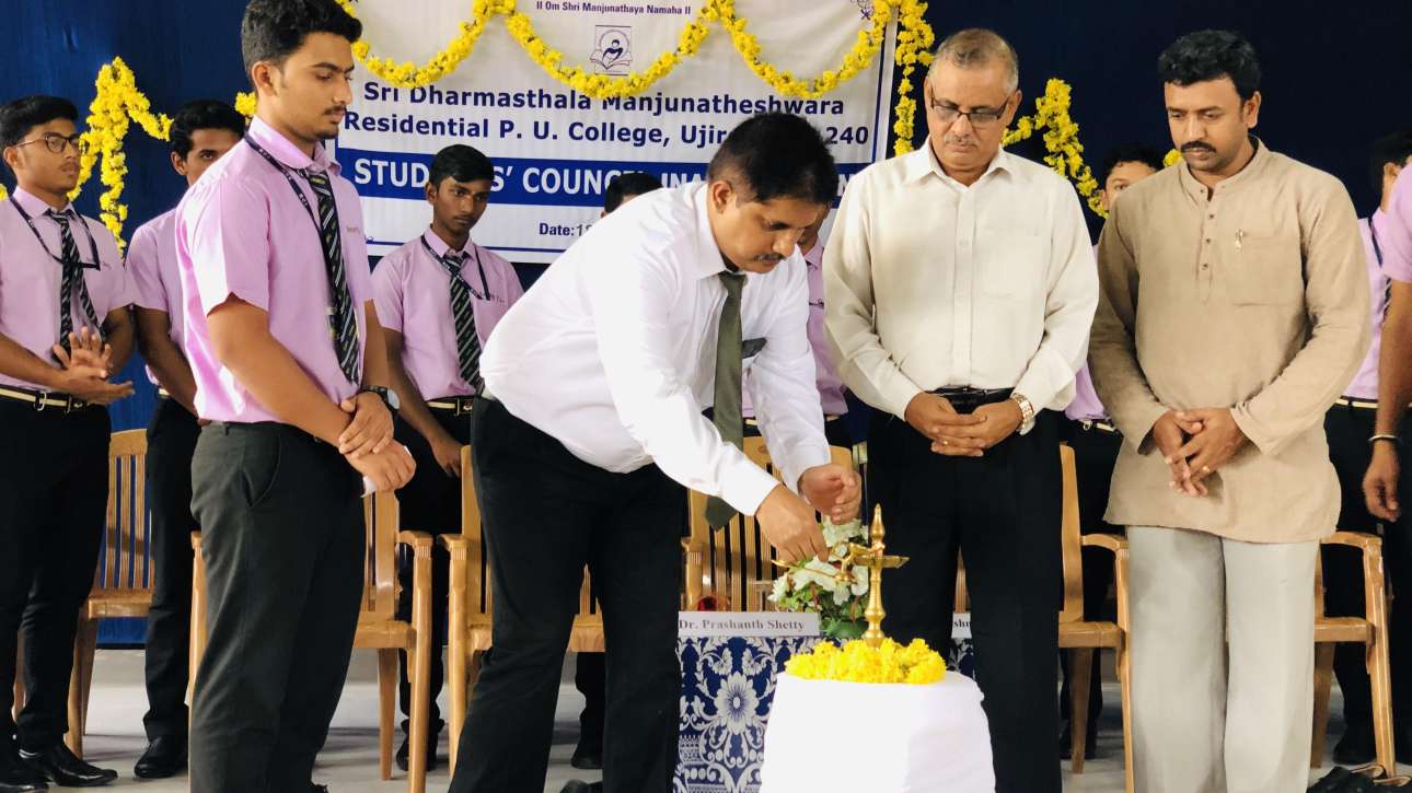 The Inaugural Ceremony of the Students’ Council for the academic year2019-20 of SDM Residential PU College was held on Thursday 18 july 2019 at the prayer hall. Dr. Prashanth Shetty, Principal of SDM College of Naturopathy and yogic sciences was the Chief Guest. Dr.T.Krishnamurthy ,Principal presided over the function.Formal inauguration of the council was done by lighting the lamp. Dr.Prashanth Shetty in his inaugural address congratulated the students and said leadership should be developed from college level and should be a model to the society. Mr. Samarth Shetty, President of Students’ council proposed the vote of thanks.