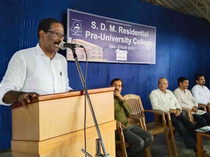 “Students are lagging behind in writing skills due to multiple-choice questions,” said Purushotham Shetty, vice principal of Vivekananda PU College, Mundaje. “The art of writing is slowly being lost”. He was speaking at a guest lecture organized by the English department at SDM Residential Pre-University College, Ujire. Shetty shared information about the recent changes in the second PU question paper pattern with students. College principal Sunil Pandit presided over the event. Bhavyashree, lecturer of the English department, compered and welcomed the guests.