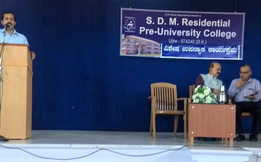 “Language transcends all boundaries,” said Vignesh Aithal, assistant professor of the English department at SDM PG Centre, Ujire, on September 26. “First, we must have love and pride for our mother tongue.” He was speaking at a guest lecture organized by the English department at SDM Residential Pre-University College. Vignesh emphasized that students should be mindful of pronunciation while using language to avoid errors. College principal Sunil Pandit presided over the event. Bhavyashree, lecturer of the English department, compered and welcomed the guests.