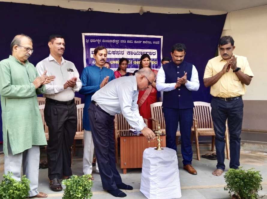 Alida Noronha was present as an assistant to the resource person. College Principal, Mr. Sunil Pandit, presided over the event and offered his best wishes. Mrs. Dhanalakshmi, Head of the Mathematics Department, along with lecturers Priya and Krishnaprasad, were also present. Math teachers from other colleges and high schools under the S.D.M. institutions attended the event. Lecturer Priya welcomed the gathering, and Krishnaprasad offered thanks and presented the event.