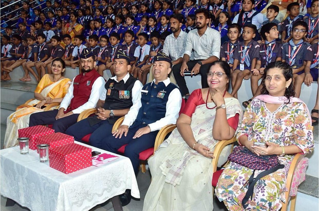 Shri Dharmasthala Manjunatheshwara School, Ashoknagar celebrated the 25th anniversary of Kargil Vijay Diwas with grandeur on 16th August 2024. The event was graced by esteemed chief guests: retired officer of the Indian Navy Veteran PO Captain Sudheer Pai, Veteran Naik Naresh Pai from the Indian Army, and experienced Sergeant Praveen Kamath from the Indian Air Force. Addressing the students, Captain Sudheer Pai recounted the heroic tales of the soldiers who fought bravely for India’s defence, narrating the backdrop of the Kargil War and other significant incidents. He also spoke about the importance and necessity of serving in the armed forces. In her address, school principal Mrs. Joy Jeevan Rai emphasized that the foundation of loving and respecting the country begins with the respect shown to elders at home. She also announced plans to introduce the NCC Cadet program in the coming days. The school’s correspondent, Mrs. Shrutha Jitesh, academic coordinator Ms. Usha Hegde, and the teaching and non-teaching staff were present for the event. The program was hosted by student Kritisha, with teacher Asha Priya delivering the welcome address. The event also paid tribute to Flight Lieutenant Gunjan Saxena, Major and Honorary Captain Yogendra Singh Yadav, and Captain Vikram Bhatra, with Chandrakala delivering the vote of thanks.